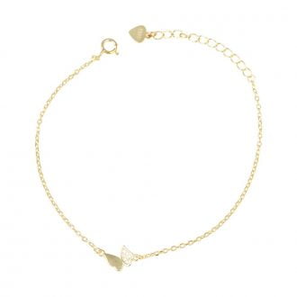 Επίχρυσο βραχιόλι με πεταλούδα με λευκές πέτρες ζιργκόν