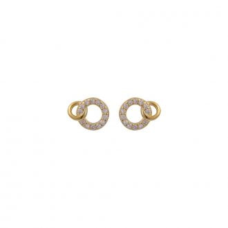 Ασημένια επίχρυσα σκουλαρίκια με μοτίφ καρδιάς με λευκές πέτρες ζιργκόν