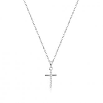 Ασημένιο κολιέ με σταυρό με λευκά ζιργκόν