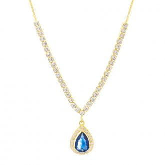 Επίχρυσο κολιέ μονόπετρο με μπλέ πέτρα.