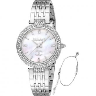 Γυναικείο ρολόι Just Cavalli σε ροζ χρυσό χρώμα και ατσάλινο μπρασελέ. Λεπτομέρειες με πέτρες στο καντράν. Σετ με επίχρυσο ατσάλινο βραχιόλι.
