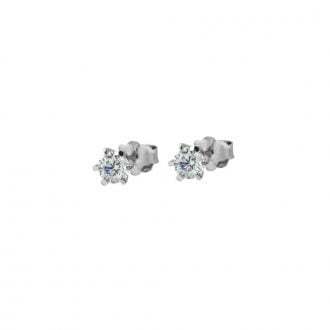 Λευκόχρυσα σκουλαρίκια μονόπετρα με λευκή πέτρα ζιργκόν διαμέτρου 2,5 mm.