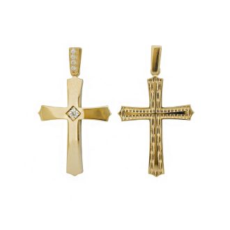 Γυναικείος χρυσός σταυρός λουστρέ διπλής όψης.